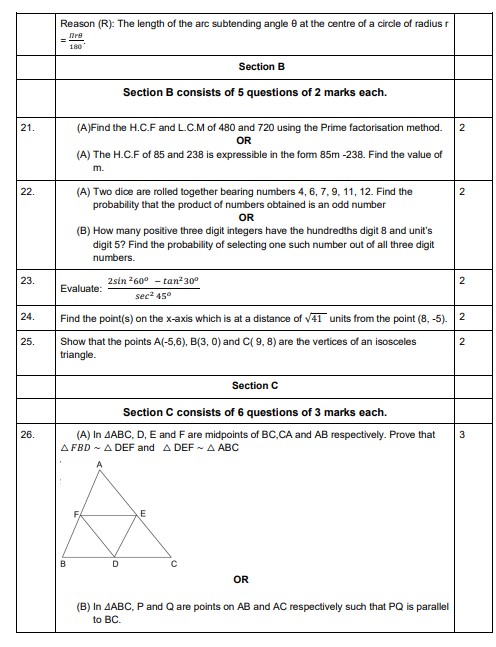 Sample Question 10 Maths CBSE
